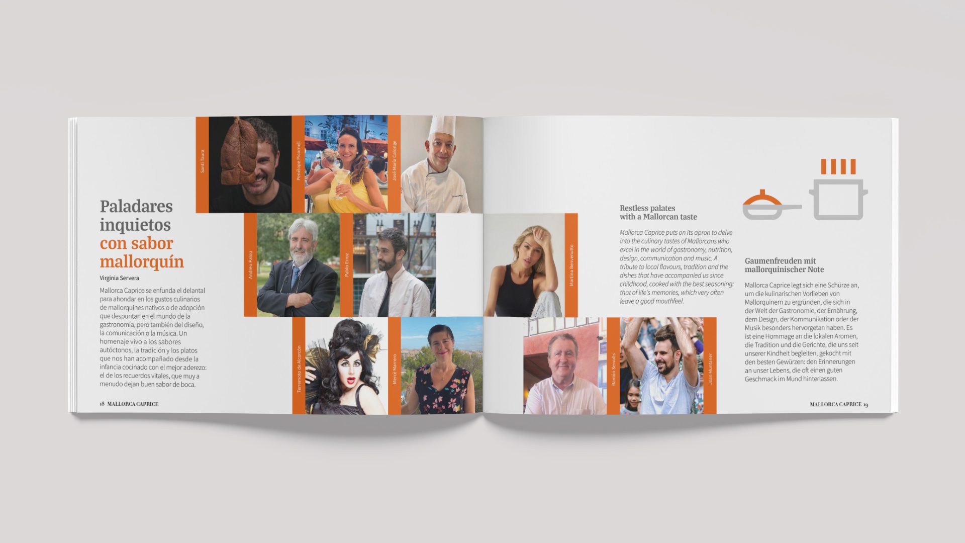 Just a few pages further on, the Mediterranean-inspired guide delves into the Mallorcan recipe book through the tastes and customs of well-known figures from the world of gastronomy, but also from the world of design, music and communication. Santi Taura, La Terremoto de Alcorcón and Andreu Palou, among others, reveal their favourite dishes, always linked to a memory.